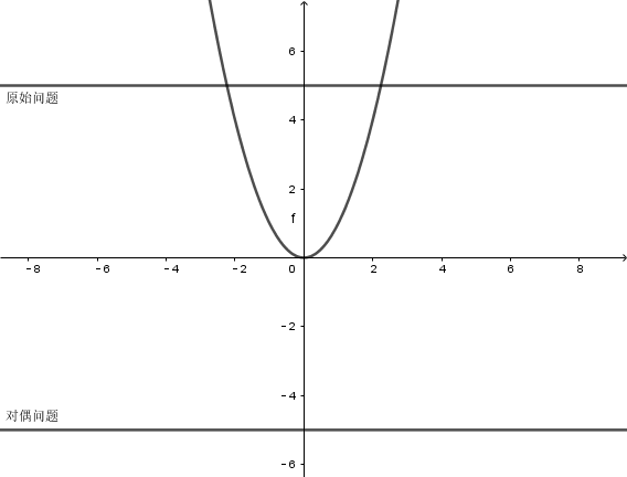 可以说对偶问题就是从另一个方向逼近f(x)最小值的问题