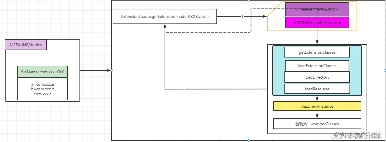 上面简单演示了 Dubbo SPI 的使用方法。我们首先通过 ExtensionLoader 的 getExtensionLoader 方法获取一个 ExtensionLoader 实例,然后再通过 ExtensionLoader 的 getExtension 方法获取拓展类对象。这其中,getExtensionLoader 方法用于从缓存中获取与拓展类对应的 ExtensionLoader,若缓存未命中,则创建一个新的实例。该方法的逻辑比较简单,本章就不进行分析了。下面我们从 ExtensionLoader 的 getExtension 方法作为入口,对拓展类对象的获取过程进行详细的分析。