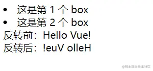 <div>反转后:{{ msg.split('').reverse().join('') }}</div>