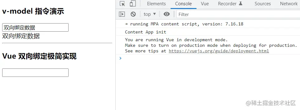 既然都讲到 v-model 了,我们来看看简单感受下底层是如何实现其双向绑定的效果的。