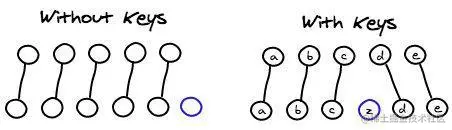 对于 diff 算法:在插入节点时,有/无 key 就好比链式存储结构/顺序存储结构对插入节点执行的操作。