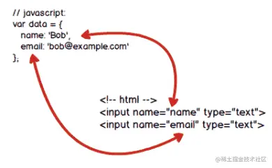 - 双向数据绑定:在填写表单时,双向数据绑定可以辅助开发者在不操作 DOM 的前提下,自动把用户填写的内容同步到数据源中(即下文的