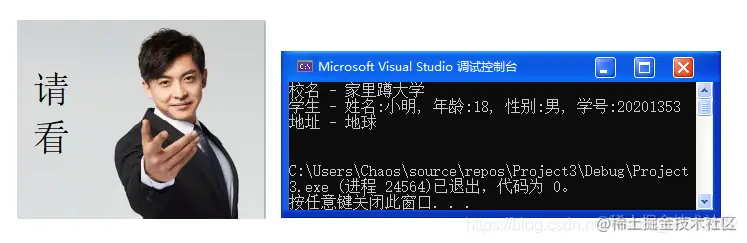 printf("学生 - 姓名:%s, 年龄:%d, 性别:%s, 学号:%s\n",