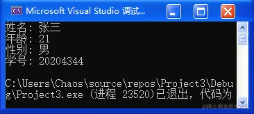 Stu s1 = {"张三", 21, "男", "20204344"}; // 使用大括号初始化