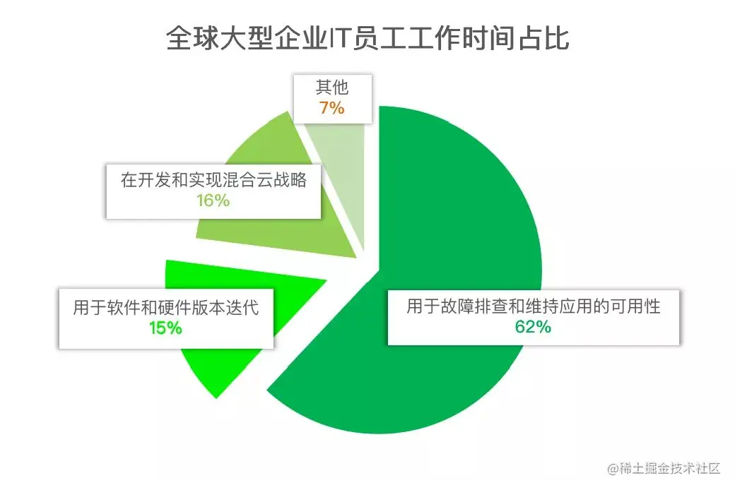 Gartner 曾对全球大型企业的 IT 人员进行了专业调研,了解他们的工作时间比重。调研报告发现绝大多数 IT 人员: