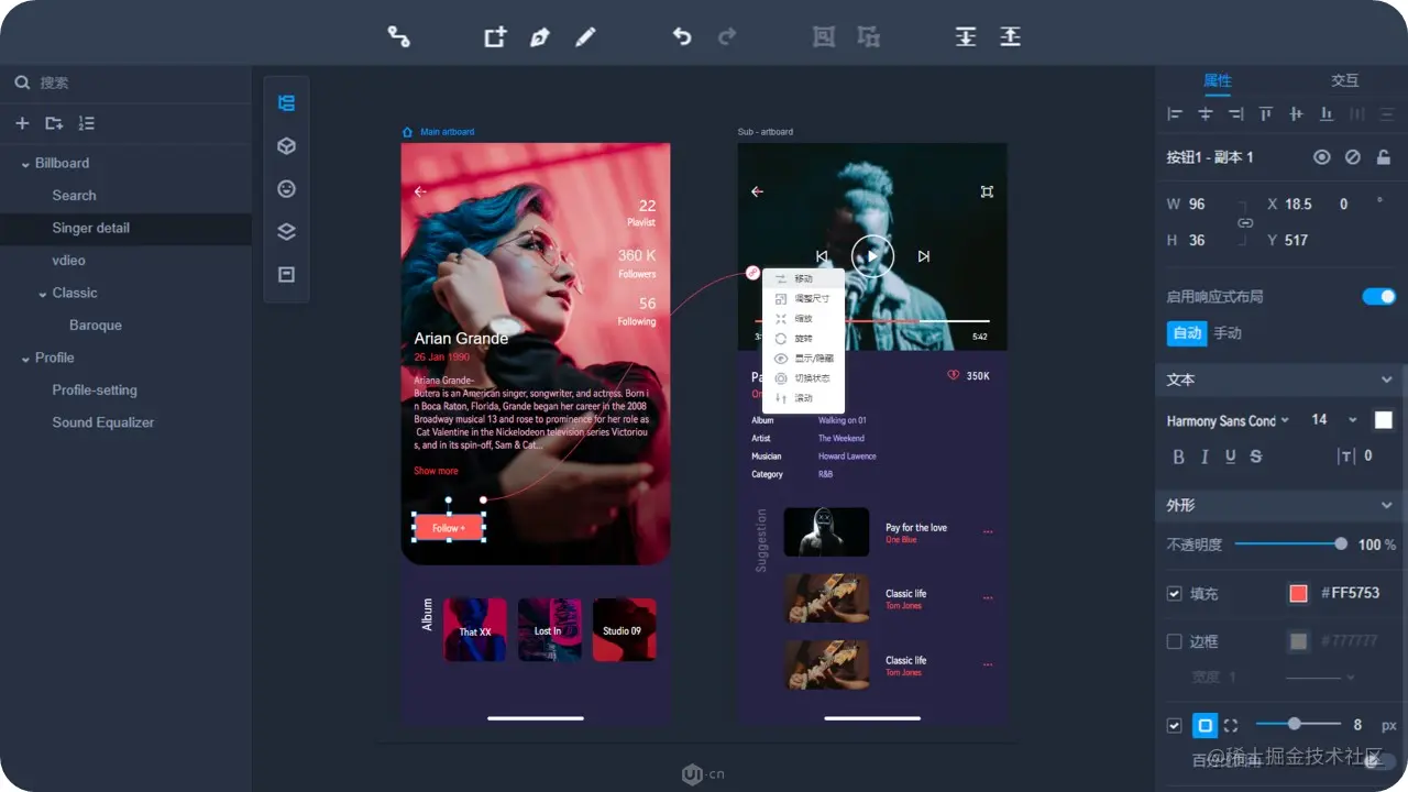 如果说结构化的原型是为了让产品功能逻辑更清晰,那摹客RP自带的交互效果预设组件、海量图标、高自由度的编辑方式等功能,都能够帮助各位产品经理快速地产出细节满满的高保真设计稿。