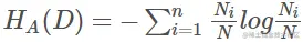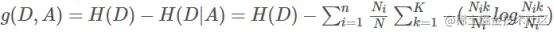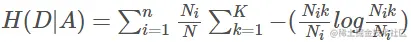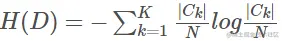 Ck是在数据集D中出现k类的数量,N是样本的数量,类别的总数。H(D|A) 是特征A对与数据集D的条件熵,其意义是:在子集Di中Y的分布。计算方法是: