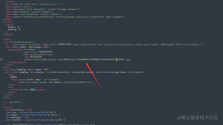 接着可以在 div 里面写入 poster 参数,注意这里只能是 http 地址: