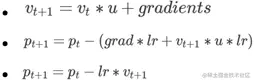 本次训练中我们使用的是Momentum,也叫动量优化器。为什么是它?下面我们了解下它的工作原理,表达式如图5所示