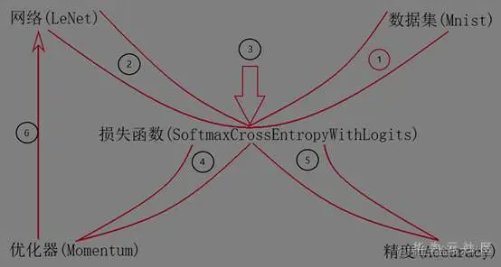 本篇的主要内容是解析一下使用MindSpore深度学习框架训练LeNet网络对Mnist数据集进行分类。首先我给大家展示出本篇内容的一个示意图,帮助大家更直观的看到训练过程的一个重要步骤,如图所示,其中1、2、3…表示训练过程中的次序,下面我们也将从这些次序进行解析。