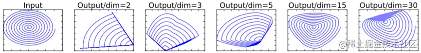可以很明显的发现如果channel越小,输出与输入的差距越大,表示丢失的信息越多,随着channel的逐渐增大,丢失的信息会越来越少。理解起来就是,假设当channel为2时,信息都会集中在这两个channel中,如果有部分数值小于0就会被RELU激活丢失掉。而如果channel为30,其实信息就相对分散一些,所以就算通过非线性函数Relu激活后归于0的值可能并不会影响太多信息的存储。