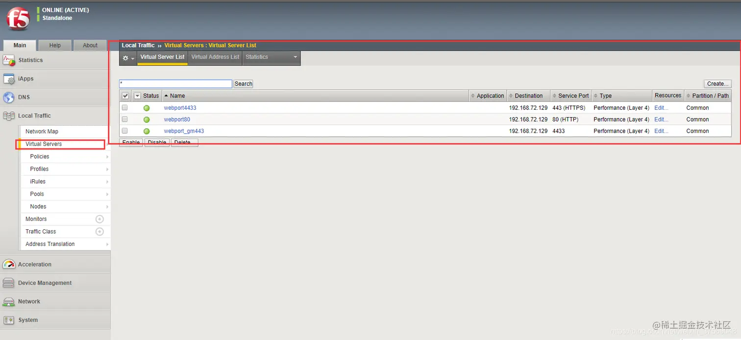 在BIGIP上通过设置VIP来截获需要进行负载平衡的流量,这个VIP地址可以是一个独立的主机地址和端口的组合(例如:202.101.112.115:80)也可以是一个网络地址和端口的组合(例如:202.101.112.0:80),当流量经过BIGIP的时候,凡是命中VIP的流量都将被截获并按照规则进行负载平衡。