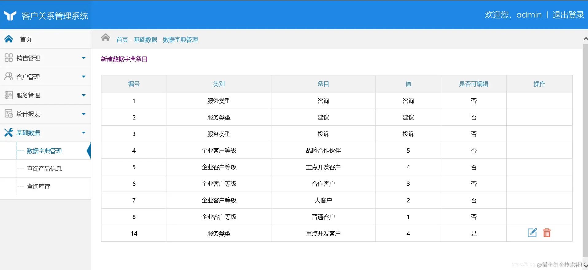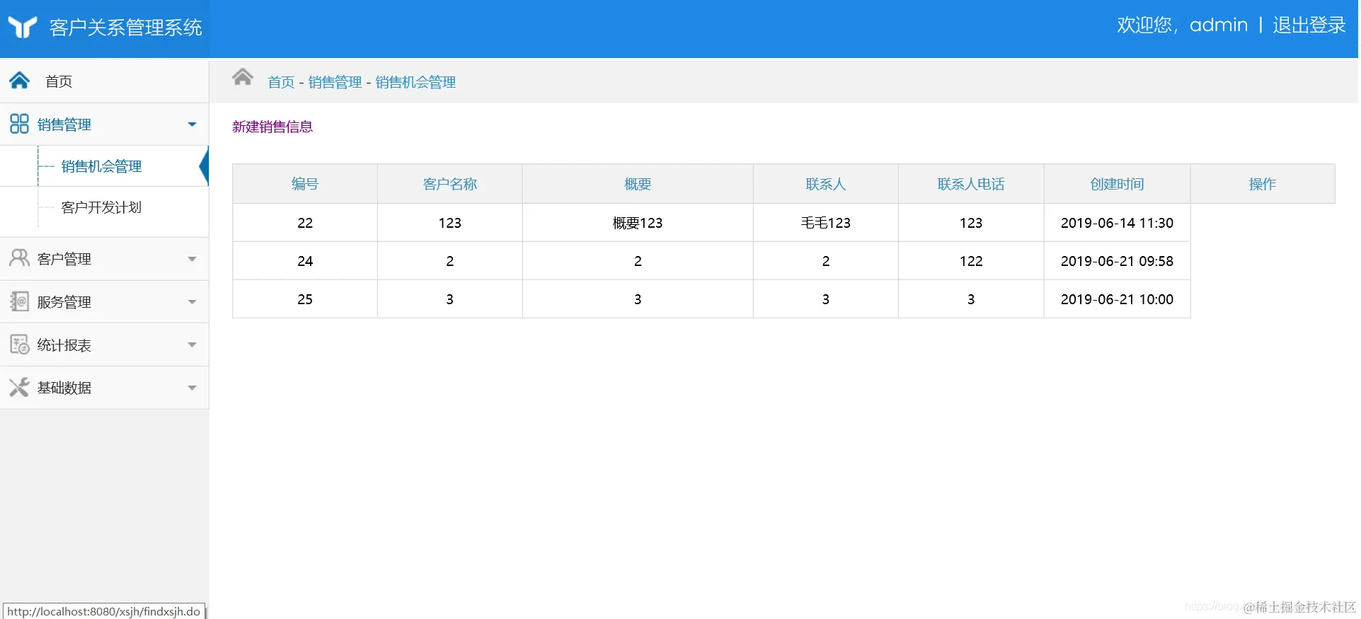 基于SSH的crm客户关系管理系统 编程指南针 2022-01-25 148 阅读1分钟 该系统采用SSH架构完成,主要对客户进行管理的系统! 运行环境 jdk7+tomcat7+mysql+eclipse4.5/IDEA 项目技术 spring+struts2+hibernate+html5+javascript 项目功能展示 登录页面 首页 销售管理 客户开发计划 客户信息管理 客户流失管理 服务管理 统计管理 数据字典管理 \