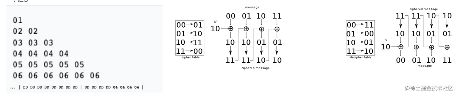 是不是有点绕口,举个例子,如果消息比 16 的整数倍少了 3 个字节,则就会填充三个 0x03 字节添加到块的末尾。