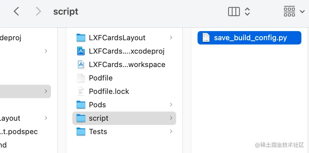 在 iOS 项目下新建一个 script 目录,存放 python 脚本 save_build_config.py