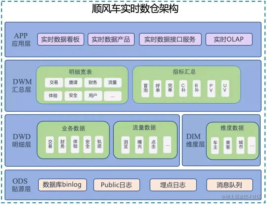 接下来,根据顺风车实时数仓架构图,对每一层建设做具体展开: