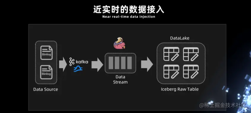 此前需要先进行数据接入,比如用 Spark 的离线调度任务去跑一些数据,拉取,抽取最后再写入到 Hive 表里面,这个过程的延时比较大。有了 Iceberg 的表结构,可以中间使用 Flink,或者 spark streaming,完成近实时的数据接入。