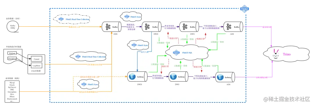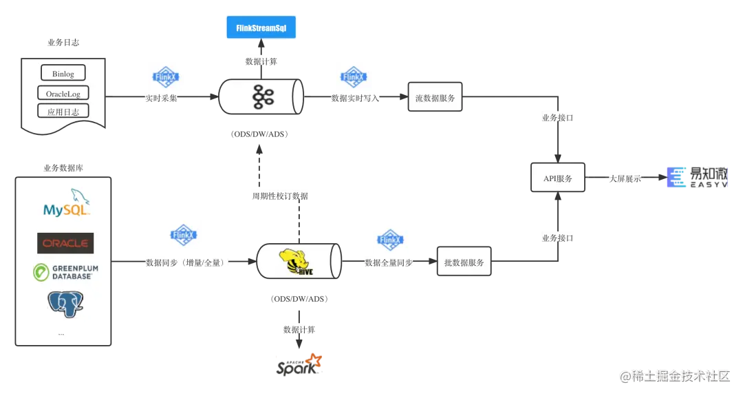下面结合架构图场景讲述下数栈流批一体的做法。