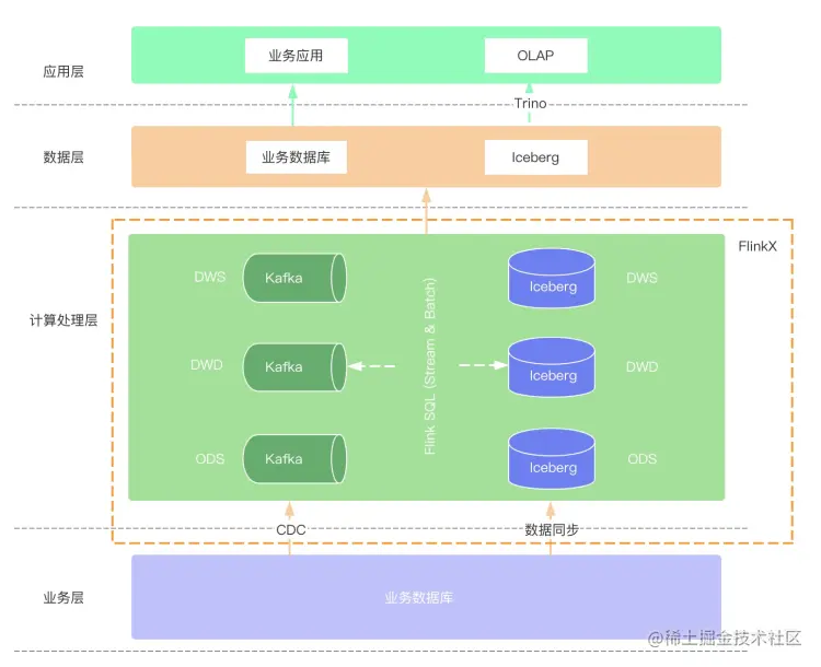 Iceberg保存全量数据,当流计算任务有重跑历史数据的需求时可从Iceberg读取数据然后无缝切换到Kafka即可。