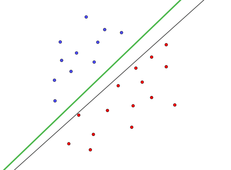 从图片上解释,对于一组数据,SVM在使用直线的同时要求数据点距离这条直线的最小距离最大,也就是说分类器和数据之间要有足够大的“间隔”。这样做的好处是很明显的,越大的“间隔”代表了更大的转圜空间,在得到新的数据之后更容易将其正确分类。