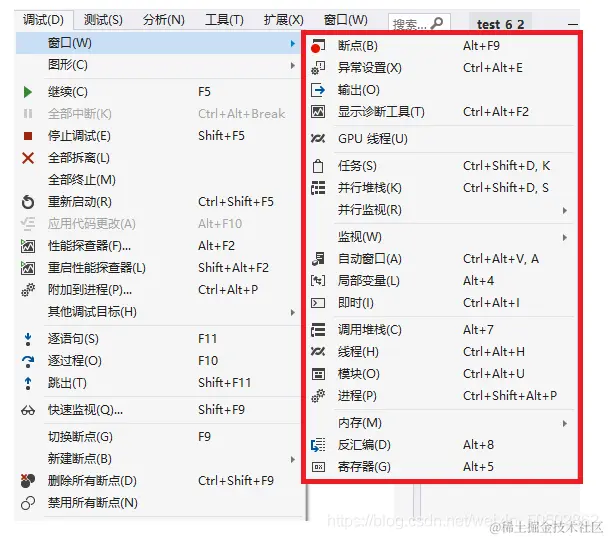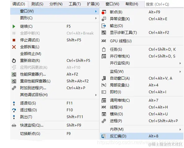 💬 查看方法:调试(D) → 窗口(W) → 选择相应的选项;
