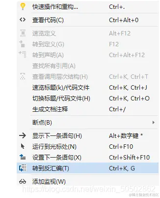 ① 第一种方式:右击鼠标,选择 " 转到反汇编 "