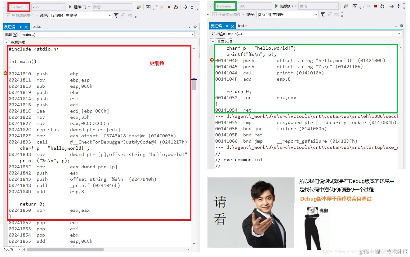 💡 我们可以发现:Release进行了优化,使得程序在运行速度和代码大小上是最优的;