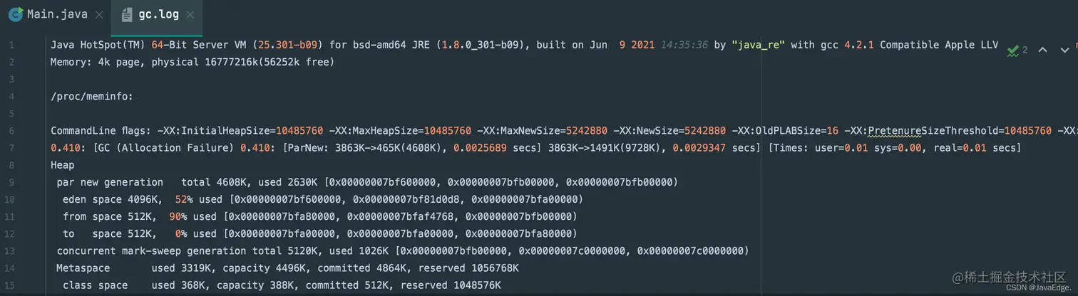 然后运行即可,运行完后,会出现gc.log文件,即本次程序运行的gc日志: