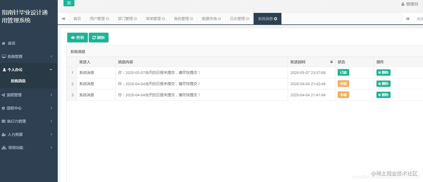 个人办公-系统消息
