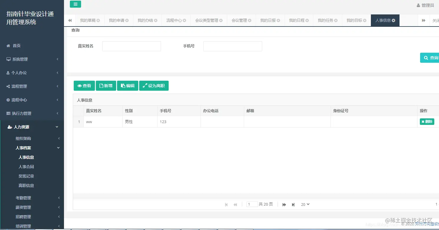 人力资源模块:包含档案管理、考勤管理、薪资管理、招聘管理、培训管理几大模块,不再一一展示。
