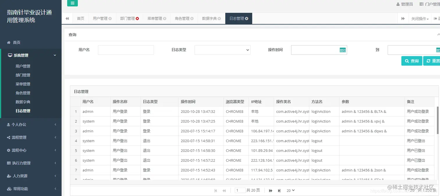- 日志记录采用aop(LogAop类)方式,可对用户所有操作进行记录