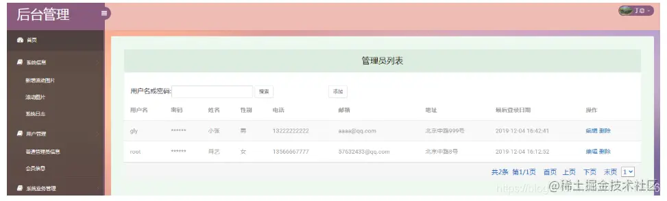 后端访问地址: http://localhost:8080/njlsystem/admin/login.jsp