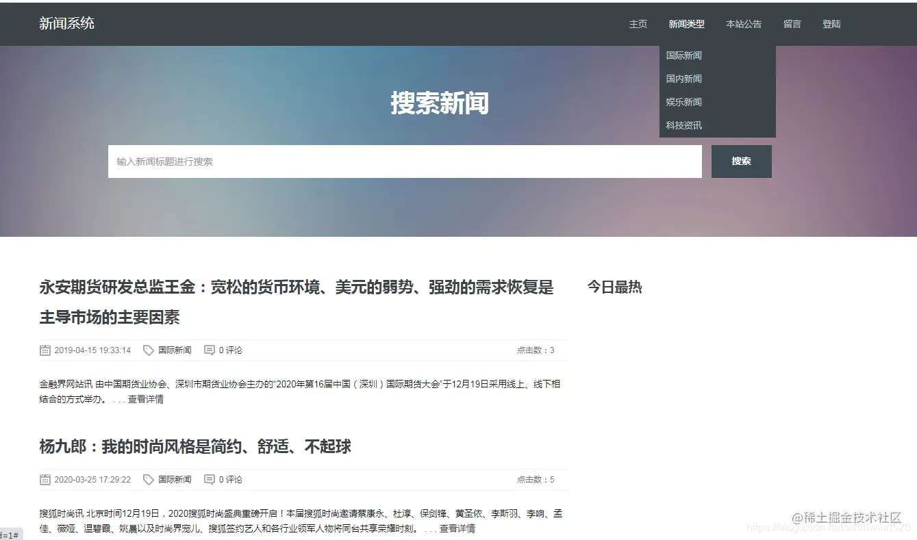 - 前台新闻首页