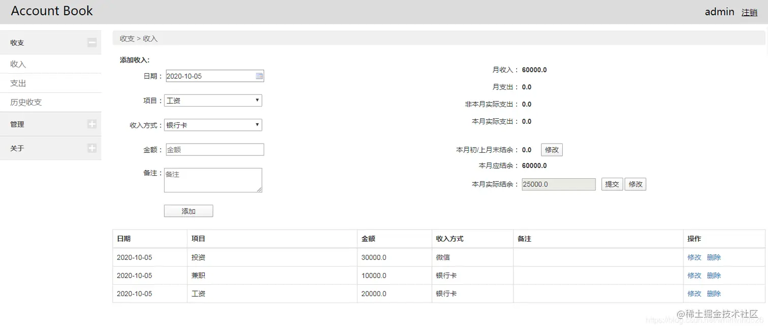 本系统基于SSM框架实现开发,主要实现个人日常收入的管理,主要功能模块如下: