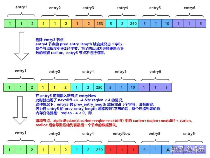 4位长,介于0至12之间的无符号整数。1字节长,有符号整数。3字节长,有符号整数。int16_t类型整数。int32_t类型整数。int64_t类型整数。 压缩列表zlentry节点结构:每个zlentry由 前一个节点的长度 、encoding和entry-data三部分组成: