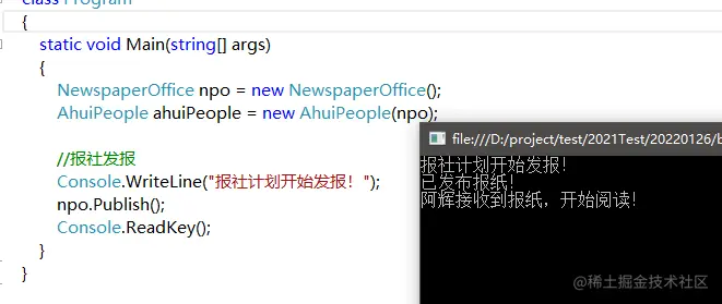 StartPublishPaper(); //3、触发事件,通知订阅者收报纸进行阅读
