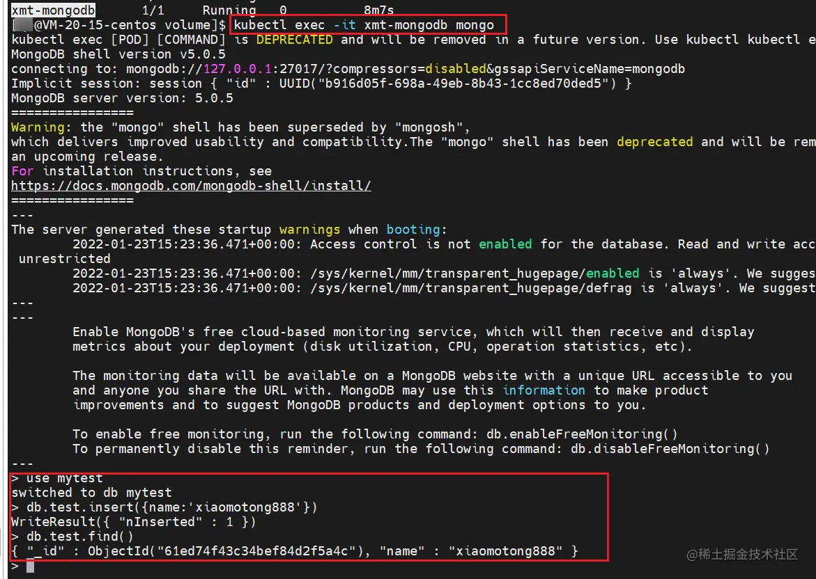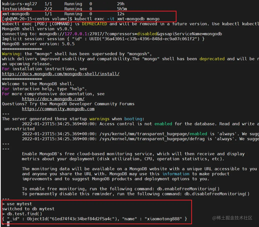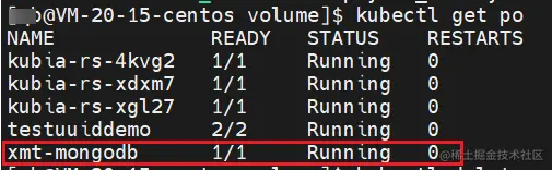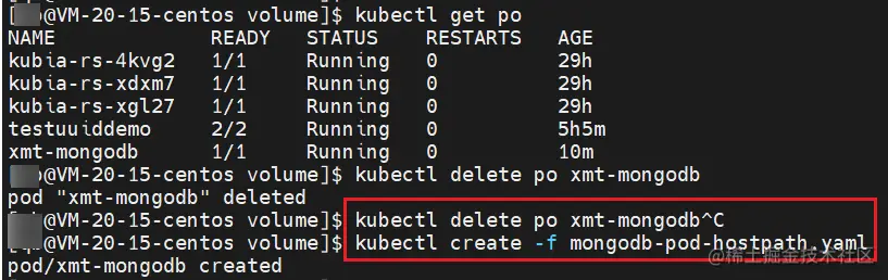 然后删除这个 mongodb Pod 后,重新启动一个一模一样的 mongodb Pod