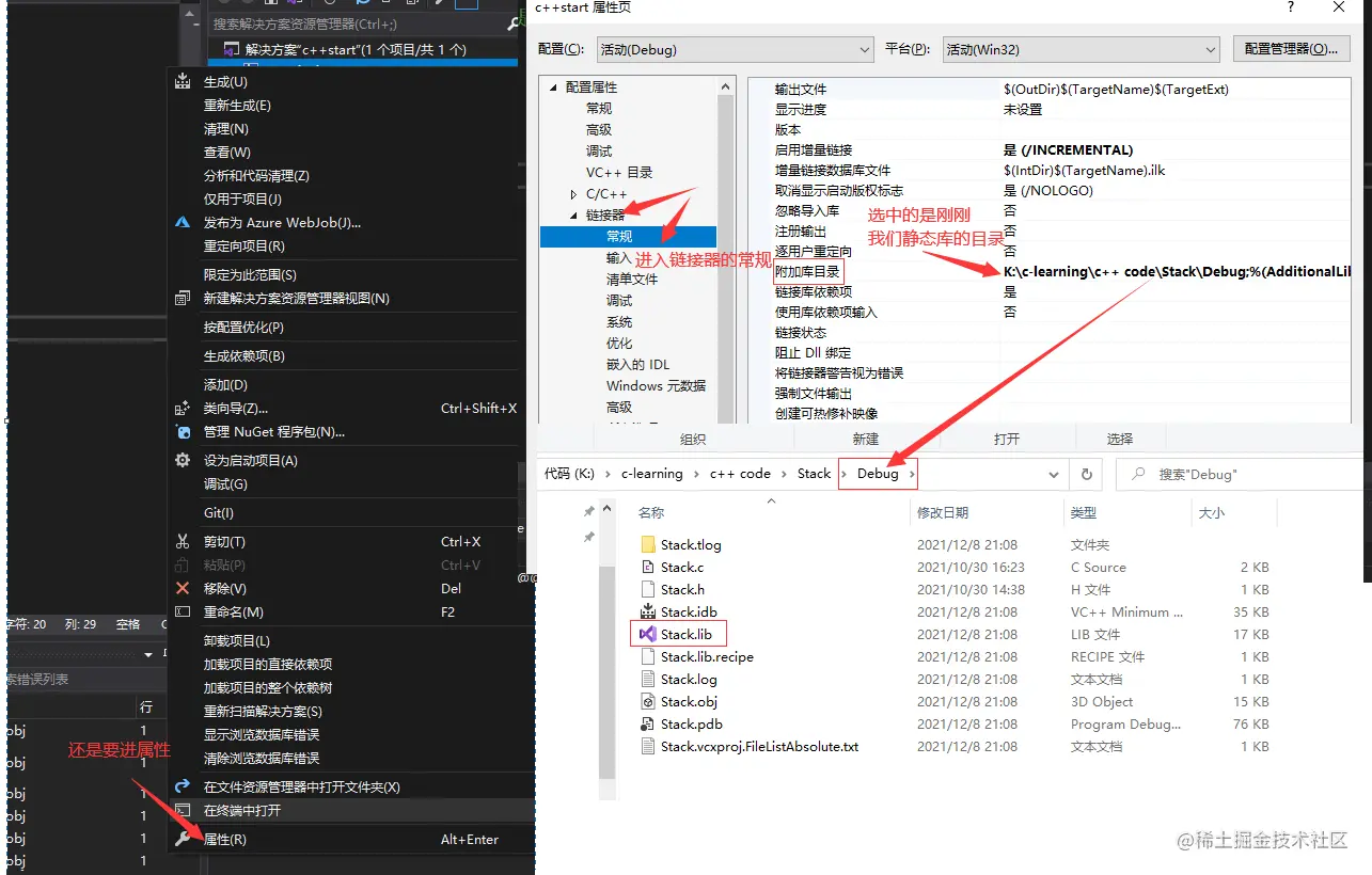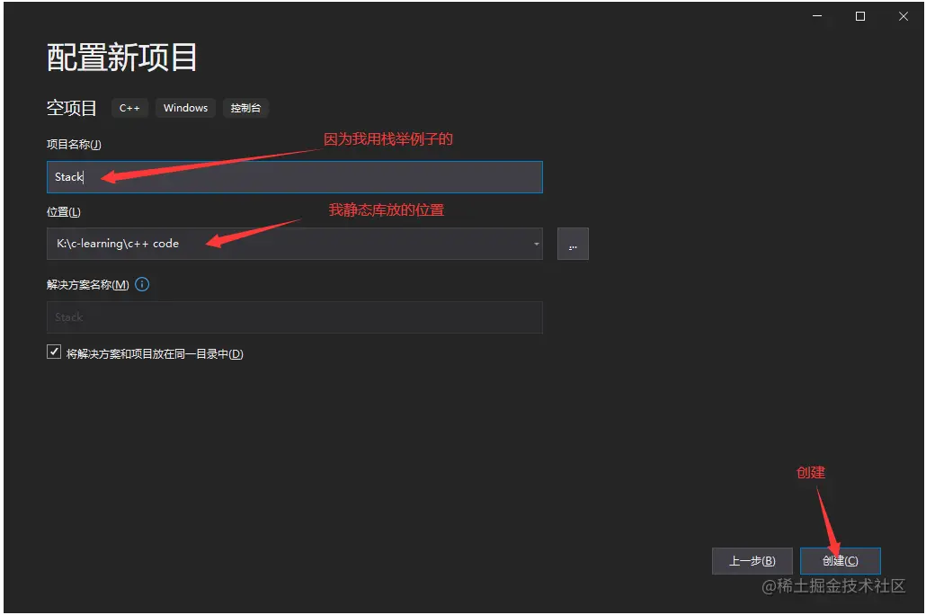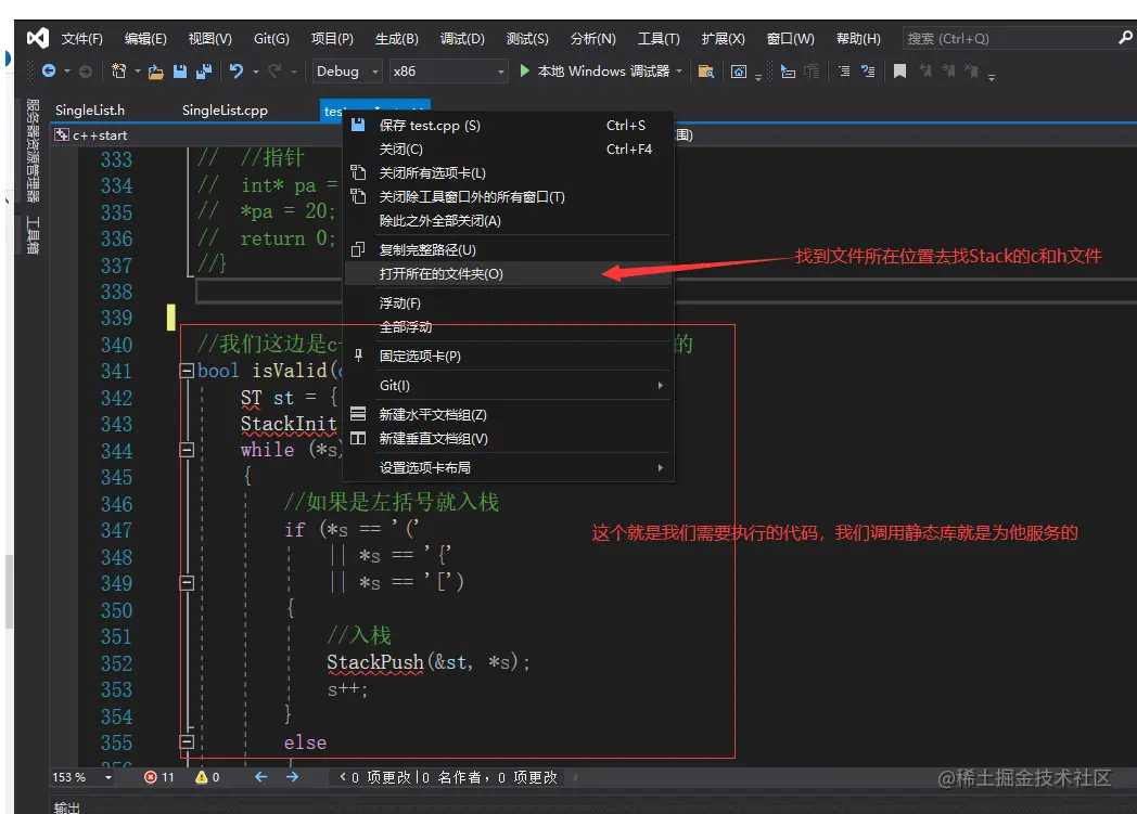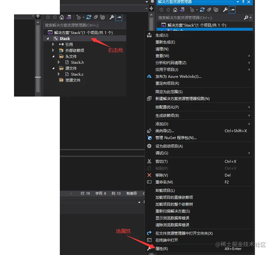 1.我们不是需要栈吗,那我们就把Stack.c和Stack.h放到空项目里面,然后改一下项目属性