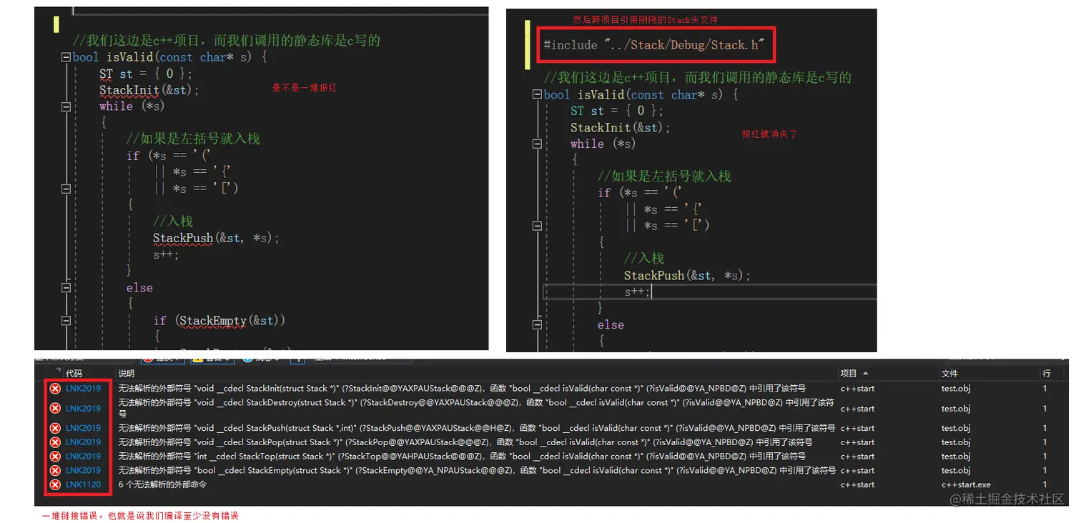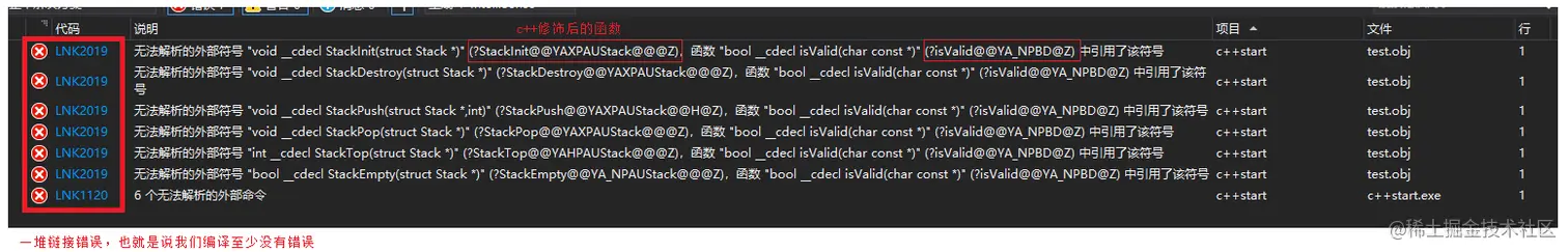 上面我们是c++项目,但是我们调的库是c写的库,然后报了链接错误,就是c++修饰后的函数名去静态库中找结果找不到