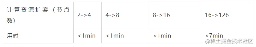 结合ECS资源池化,网卡并行加载和docker镜像预热等技术,16节点内端到端的耗时接近1分钟。