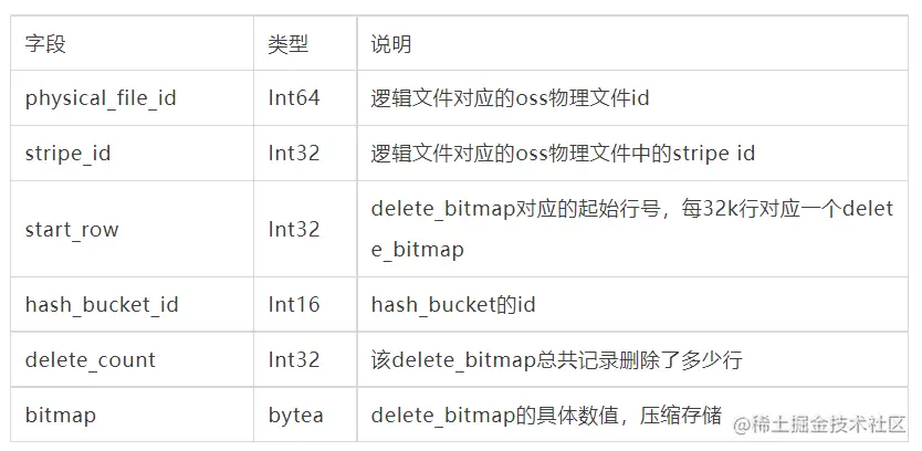 Start_row对应32k对应一个delete bitmap。这个32000 4k,行存使用的32k的page可以保存7条记录。