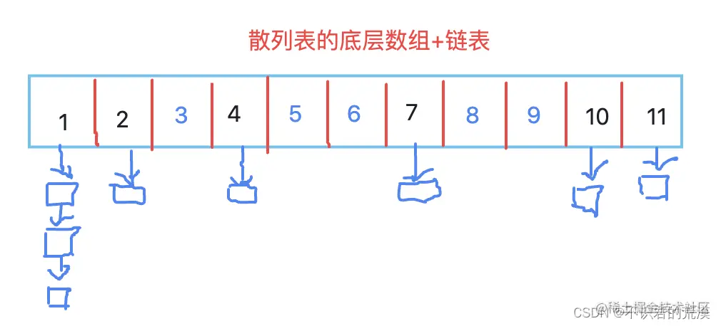 底层存储还是个数组,但是每个位置实际存储的是一个链表,当新增一个元素的时候,就是这个位置的链表上新增的一个结点。