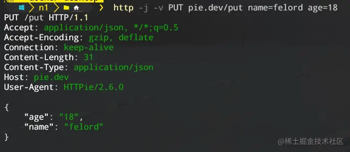 http -j PUT pie.dev/put name=felord age=18