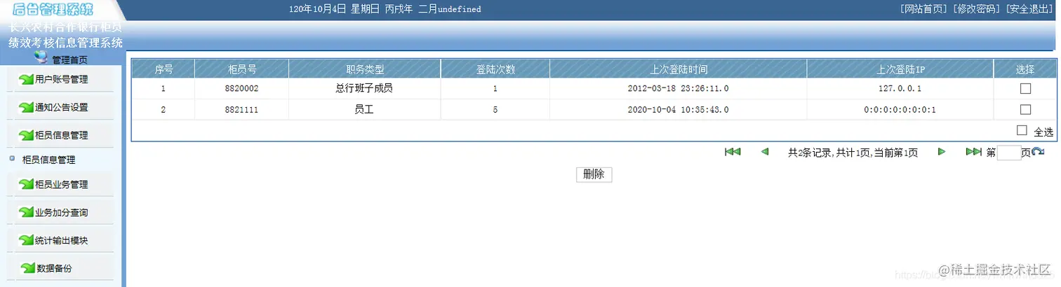 1.权限处理模块:管理员与普通柜员,管理员进入的是管理员页面,普通柜员进入普通柜员的界面。