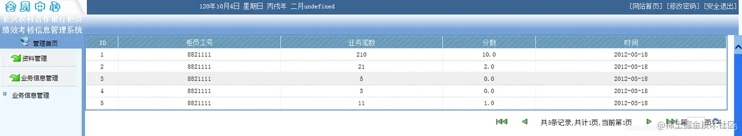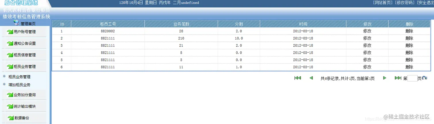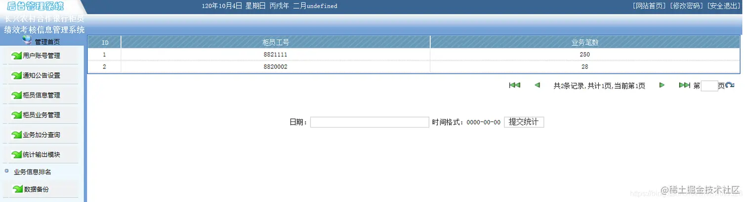 4.统计输出模块:比如可以统计本合作银行业务笔数由多到少排名,加减分情况排名。