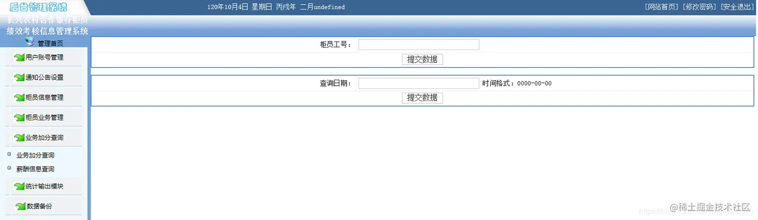 3.1 查询:输入柜员工号,可以查询到该柜员的工作情况以及加分减分情况及薪酬情况;按日期查询,可以查询到该日期本合作银行每位柜员的工作情况及加减分情况。