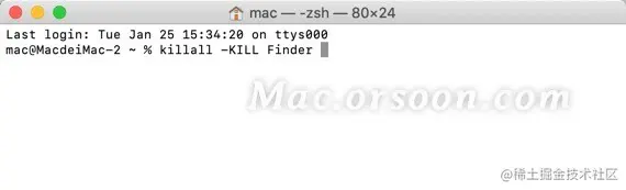 此命令将重新启动Finder,并可能有助于解决崩溃的问题。