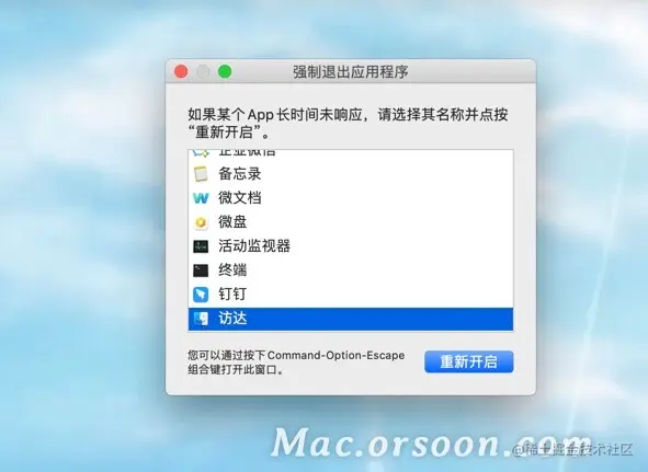 注意:您也可以使用键盘快捷键Option-Command-Esc启动强制退出。