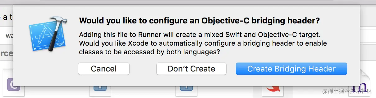 flutter项目中,在iOS平台运行可能出现编译问题无法运行。这个是由于老的flutter项目里面没有使用到swift,所以没有briging文件,但是插件使用了swift,所以会编译失败,这种情况直接使用xcode在iOS项目中创建一个swift文件,会自动生成briding文件。