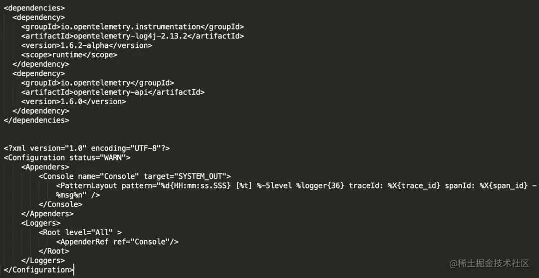 Log4j2 支持 Trace,引用 OpenTelemetry 提供的 jar 包,以及修改配置文件。
